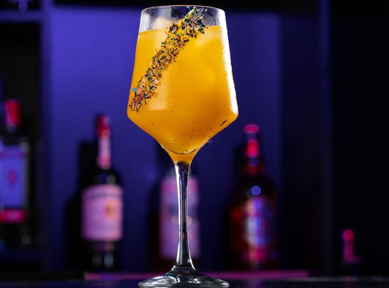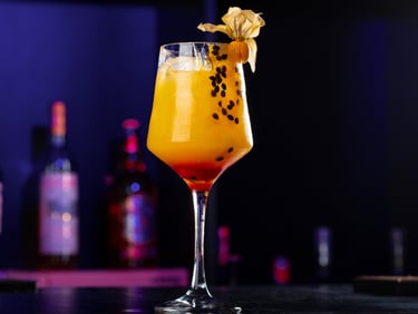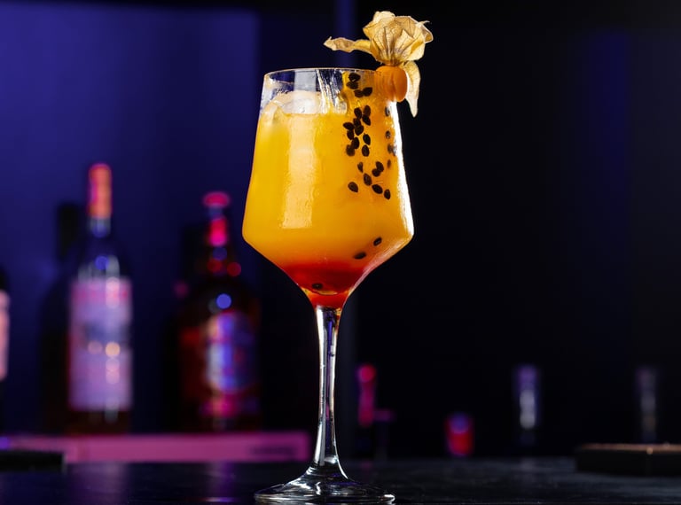 suco de laranja, geléia de maracujá, monin tangerina e grenadine