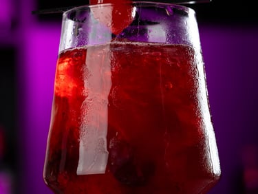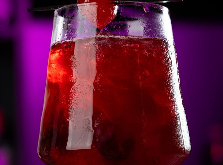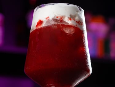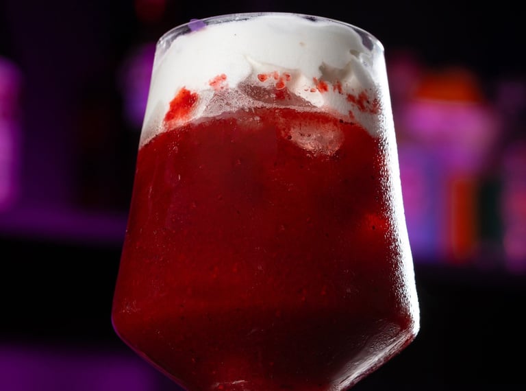 purê de frutas vermelhas, chá cranberry com hibisco e espuma de gengibre